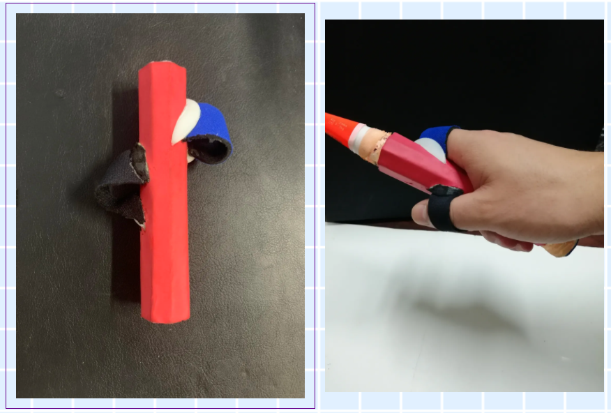 初期调查过程中,我们发现当前市面上的几款持拍矫正器均是与球拍一体的,1500元左右的高昂价格令很多人望而止步。我们就想设计一款可以从球拍上拆卸的矫正器,做到器、拍分离,性价比高,实用性强。同时,因为我们都是羽毛球运动员,所以在设计过程中,使用数据手套采集了多名专业羽毛球运动员(包括国家队队员、世界冠军获得者)的持拍手型数据。特别感谢文国军教授对持拍数据分析的帮助。