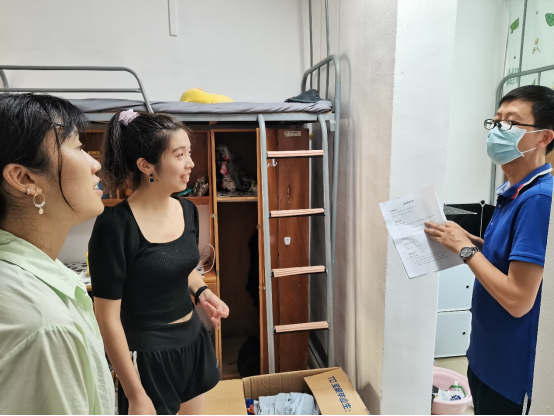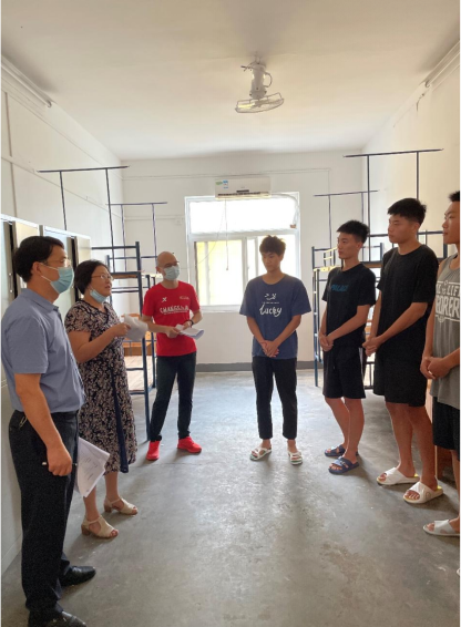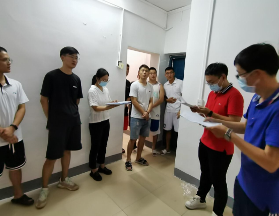 在走访研究生宿舍过程中,刘良辉副经理深入每间宿舍,认真查看宿舍内的各项设施,耐心细致地和同学们交流,详细地了解每位新生的名字、家乡籍贯、本科专业等信息,并给予生活、学业等方面的建议。张毅恒副教授对研究生新生提出了殷切的希望,希望同学们积极肩负起自己的责任,牢记“艰苦朴素,求真务实“的校训,吃苦在前,享乐在后,登高望远,勇攀学术高峰。辅导员陈老师嘱咐同学们要认真做好防疫工作,注意个人防护,加强安全防范意识,谨防上当受骗。