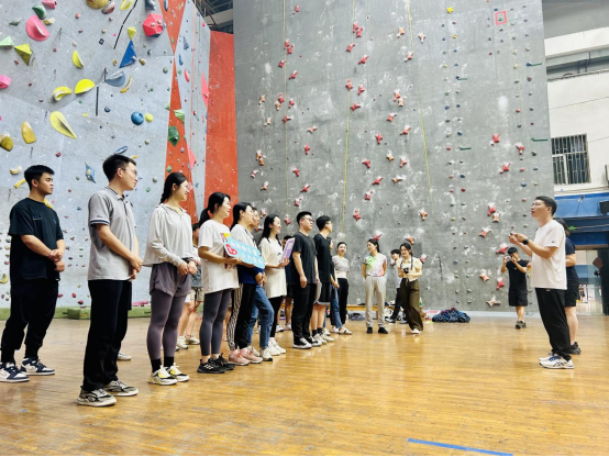 辅导员老师集中观看公司攀岩运动员速度攀岩、难度攀岩和攀石三个项目的表演展示,并在助教团队的带领下进行速度攀岩与难度攀岩尝试,通过亲身体验的方式感受攀岩运动的魅力与乐趣。