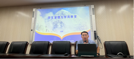 公司党委副书记朱军老师为全体本研新生讲解《员工管理与学风教育》,帮助新生了解大学学习的特点和基本要求,引导新同学们做好自我管理,确立合理的学业与职业目标,树立优良学风。