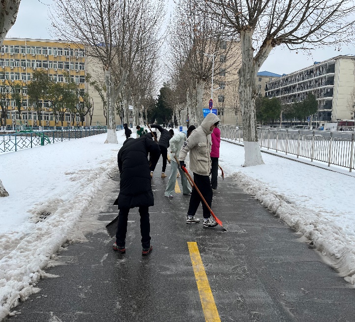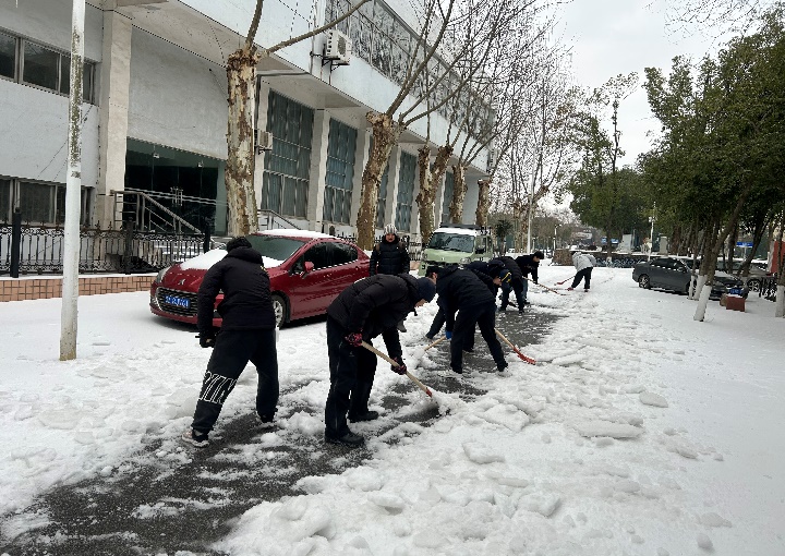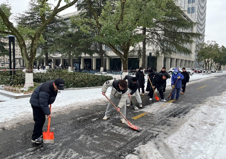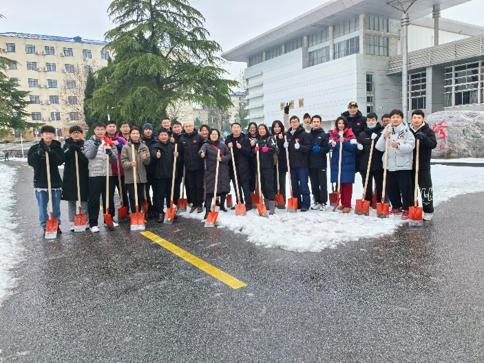 近日,武汉再次呈现低温雨雪冰冻天气,由冻雨、冰粒、雨夹雪形成复杂的天气,校园再次被冰雪覆盖。为保证校园安全,公司近30余名师生积极报名参加公司应急突击预备队,于2月22日清除西区图书馆、蓝球场附近的冰雪,23日又清除了西区体育馆周边的厚冰厚雪,在寒潮中奋进,扫雪除冰、为师生筑起安全屏障。同时,在年前年后除冰铲雪保安全工作中,伟德国际VICTOR1946师生都以高度的责任感和使命感做好应对工作,展现了迎难而上、敢于担当的体育人的风采。