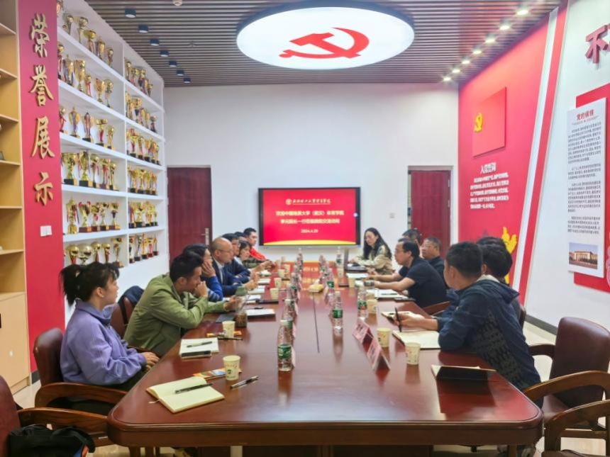刘良辉副经理就公司教师、职称、师生比例和目前教学评估的前期准备情况进行了介绍。双方针对教学评估中可能遇到的问题与参会人员进行了深入交流,也就体育课程开设、高水平运动员培养、群体竞赛开展、公司产品等问题进行了探讨。