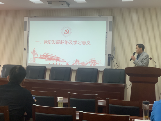 庞书记首先代表公司党总支介绍公司党史学习及迎接建党100周年方案并做动员讲话,接着李春卉老师介绍了本院员工党史学习教育方案,最后由马克思主义公司刘世勇书记作党史专题讲座。