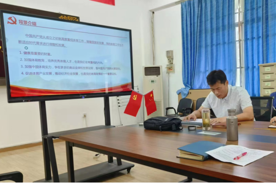 2023年7月4日下午 体育公司党委在西区体育馆党员之家举行公司党委理论学习中心组专题读书班专题学习。李伦副经理领学,公司党委委员、支部书记以及三级机构负责人参加了此次学习活动。