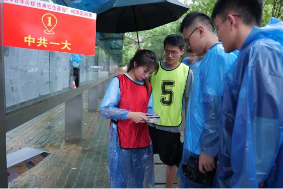 来自经管公司的参赛队伍晨旭队感悟到:“百年征程波澜壮阔,百年初心历久弥坚。今天我们地大学子在雨中重温光荣岁月,探寻百年历程,百年党旗红,笑唱南湖风。大雨挡不住青年的朝气与激情,我们晨旭队徜徉于党史知识的海洋,共唱红色歌曲表达对党的拥护和热爱;旗手前引路,亿众续长征。我们将继承革命先辈精神,为实现中华民族伟大复兴的中国梦不懈奋斗。吾党百年,青春焕发!”