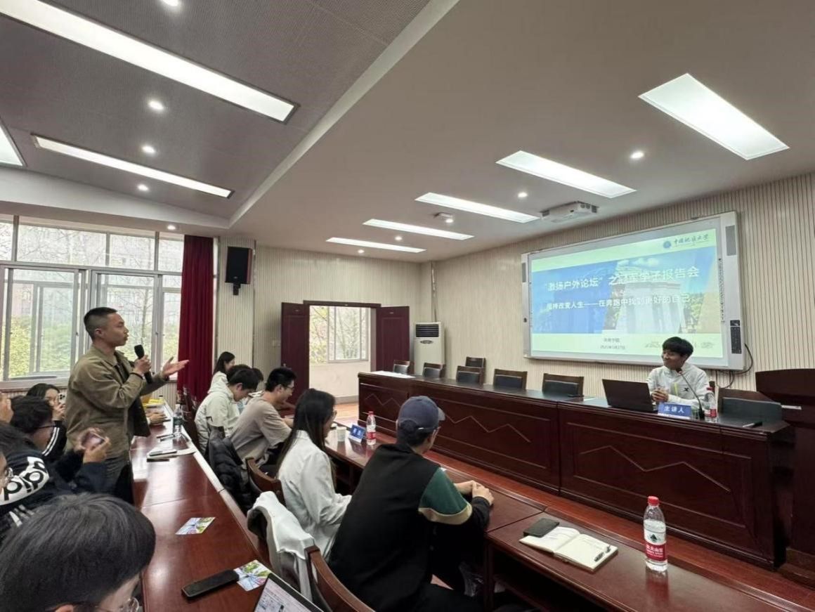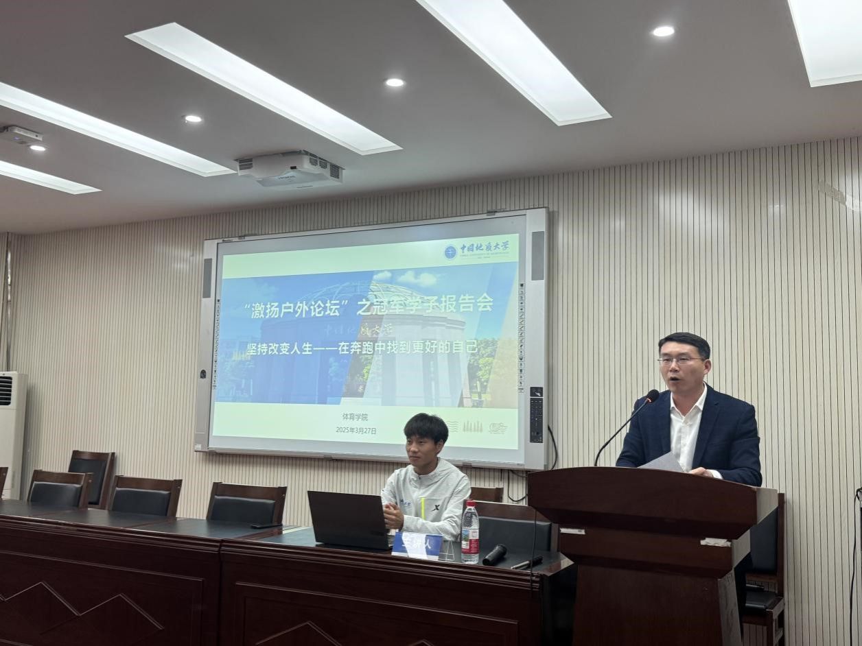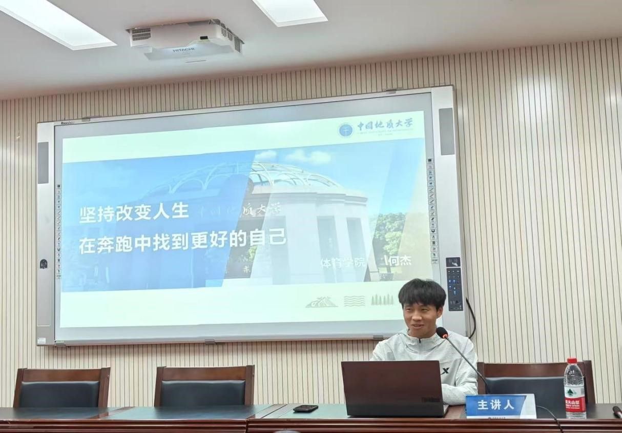 朱军总结讲话。他表示何杰在本次交流中,不仅分享跑步经验与人生感悟,更传递了坚持与热爱的精神。奔跑者的坚持精神,如同火炬般照亮前行之路。青年员工应向何杰同学学习,发扬地大“艰苦朴素,求真务实”的校训精神和攀登精神,不畏艰难,勇于挑战,追求卓越,勇攀人生和事业的高峰,为中国式现代化建设贡献青春力量。