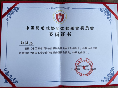3月4日,中国羽毛球协会体教融合委员会成立大会在北京召开,北京大学、中国科学技术大学、bv伟德国际1946(武汉)等87家单位成为会员单位(其中大学会员单位34家),公司伟德国际VICTOR1946邹师思副教授当选为中国羽毛球协会体教融合委员会委员。